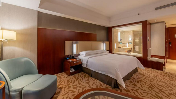 42 sq meter room equipped with Photocatalyst air purifier has 1 king bed. Enjoy the luxury high mattress bed and premium linen. In-room entertainment centres around a 55-in chlarge-screen LCD TV , while Wi-Fi comes as standard in all rooms. Refresh in the large bathroom with rainforest shower and bathtub. Complimentary use of the swimming pool and fitness center.